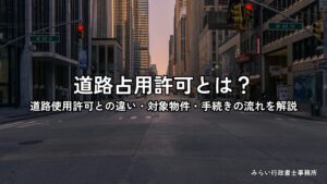 道路使用許可と道路占用許可。 名前が似ているため混同されやすい制度です。 しかし根拠法・申請先・目的がまったく異なります。 この記事では両制度の違いを比較表で整理します。 両方の許可が必要になるケースも具体例で紹介します […]