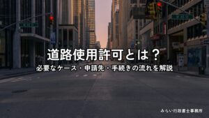 道路使用許可・道路占用許可の申請代行は行政書士の独占業務です。建設工事や看板設置で道路を使う際、書類作成から警察署・道路管理者への提出まで一括して任せられます。本記事では愛知県を中心に、行政書士への申請代行の費用相場とメ […]
