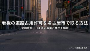 名古屋市で看板の道路占用許可を取得するには、所管の土木事務所への申請が必要です。突出看板や日よけを道路上空に設置する場合、道路法第32条に基づく占用許可を受けなければなりません。無許可設置には罰則があるため、正しい手続き […]