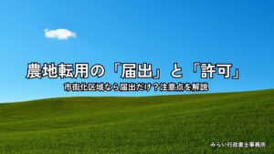 農地転用の届出と許可の違いは、手続きの難易度や所要期間を大きく左右するポイントです。「市街化区域なら届出だけで簡単に転用できる」という話を耳にすることがありますが、実際には届出でも注意すべき点が複数あります。 この記事で […]